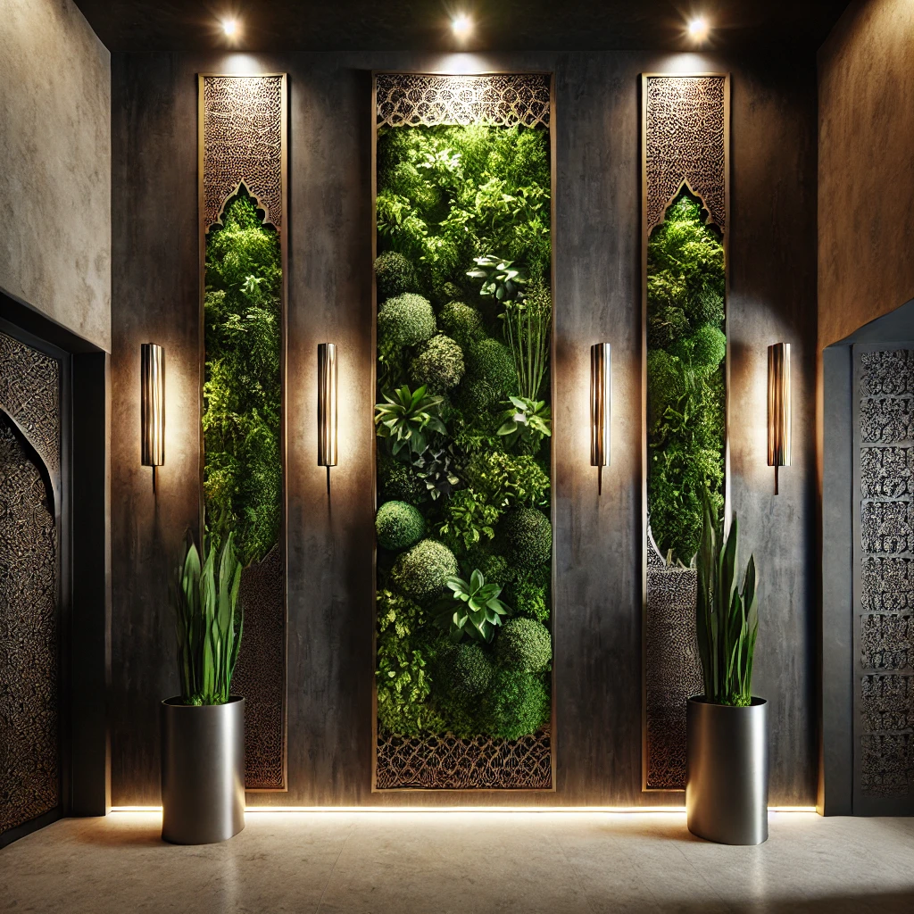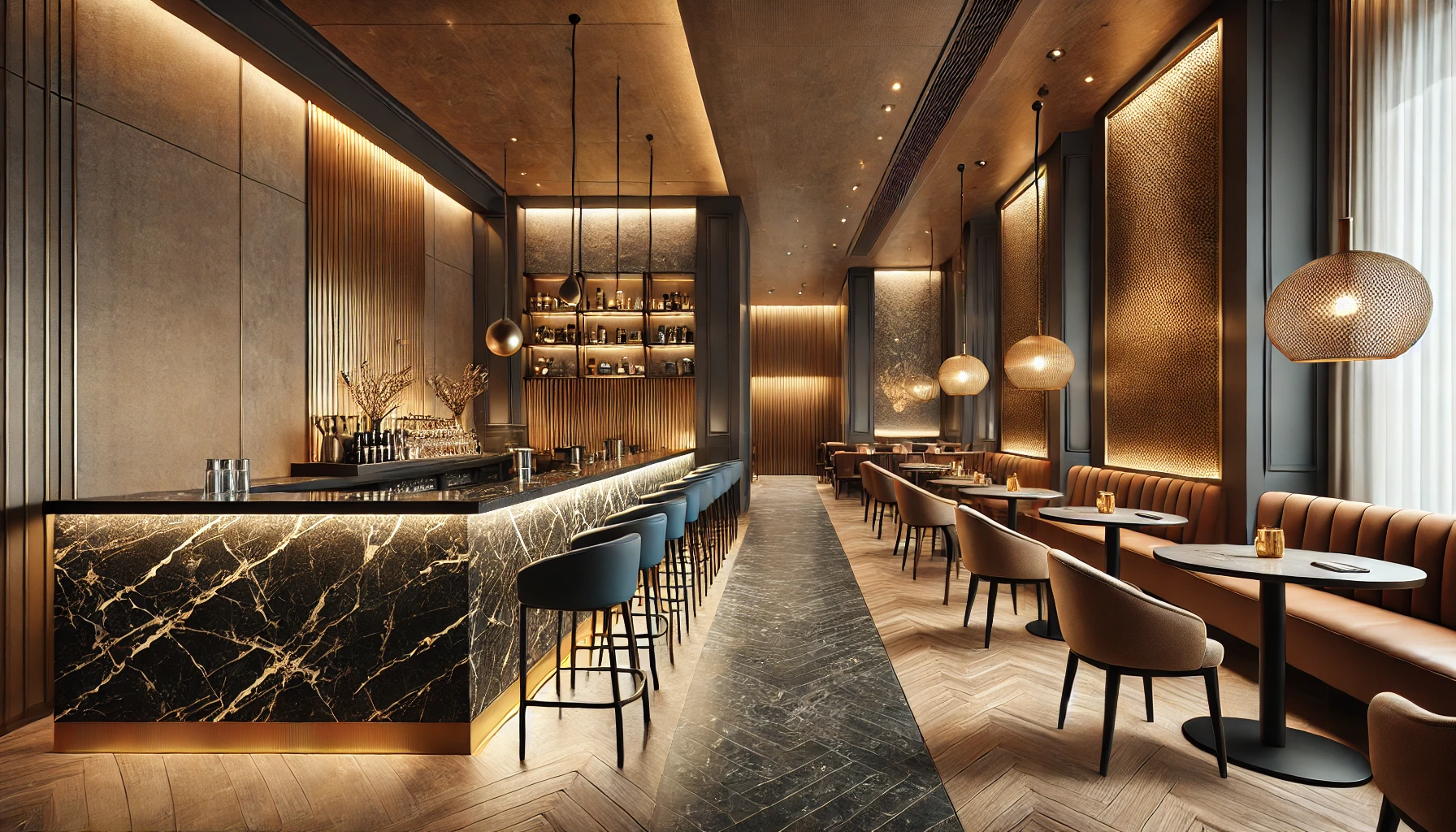 An Elegant Morrocan-inspired entrance, designed to make a strong first impression-highlighting the importance of warm, inviting entryway in setting the tone for the restaurant experience.